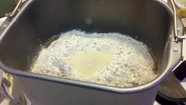- Trộn bột trong một bát lớn, trộn kỹ hỗn hợp bột, đường, muối, ngũ cốc, hạt caraway, bột cà phê, bột hành tây, hạt thì là và men chưa tan vào với nhau chúng ta gọi đây là hỗn hợp 1.
